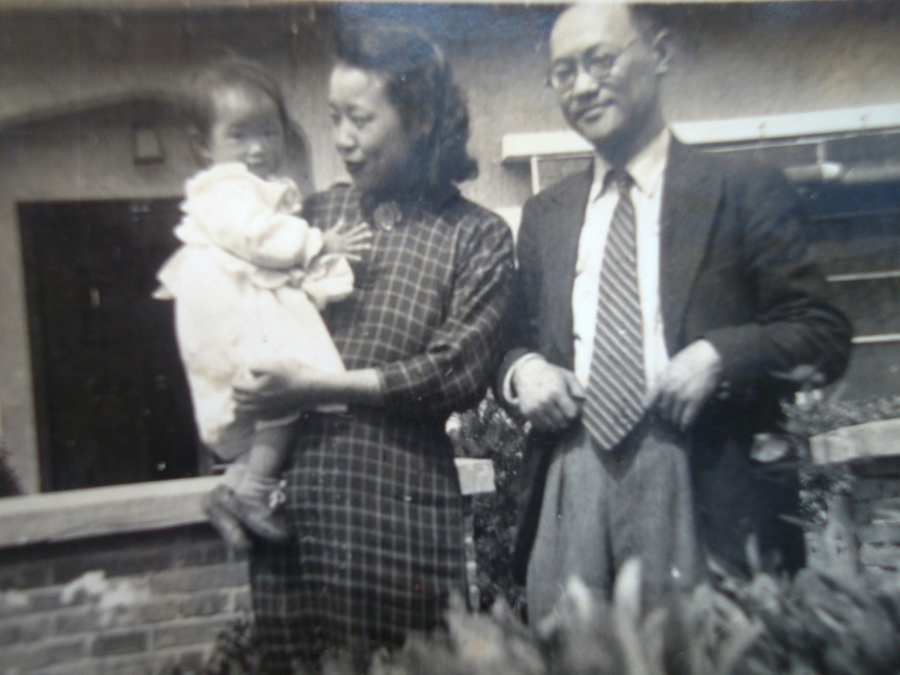 1946年10月,巴金与萧珊、女儿小林摄于复旦大学教工宿舍(当时在复旦大学新闻系任教的友人萧乾的住处)